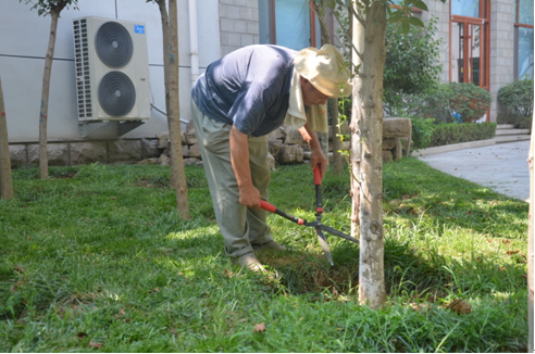 集團(tuán)辦公室綠化工—烈日下修剪著草坪,只為我們的“重山”更美