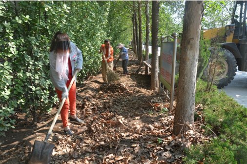 鋁業(yè)公司的操作工正在清除綠化帶枯草落葉