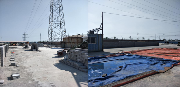 廠區(qū)東側(cè)廢鐵堆場地清理、硬化完畢,正在按計劃進行圍墻搭建