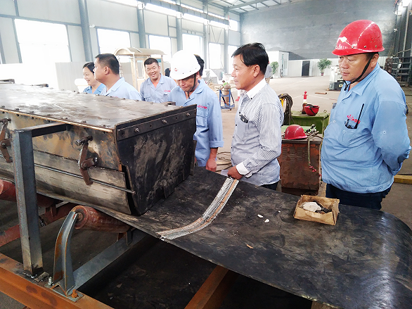 評(píng)審小組察看機(jī)械廠皮帶全密封裝置