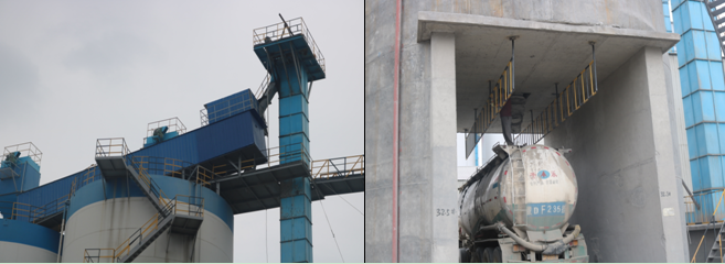 水泥絞刀存在漏料情況 ;裝車處粉塵較大