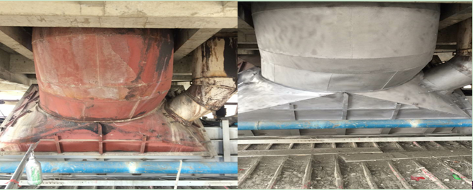 32.5散裝倉天橋部分鋼瓦打磨刷漆;散裝裝車口加裝安全護欄