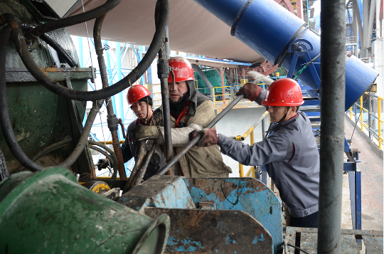維修主任王克強(qiáng)帶領(lǐng)著員工調(diào)整旋窯托輥