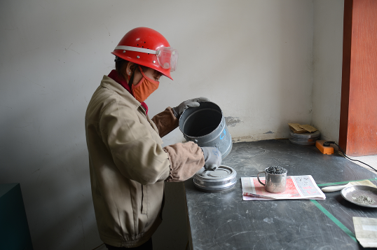 化驗(yàn)控制工李紅正準(zhǔn)備磨制樣品