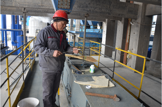 煤磨操作工牛普業(yè)正在清理油站