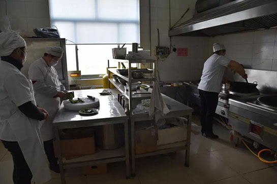 正在準(zhǔn)備午餐的食堂人員