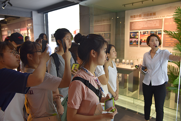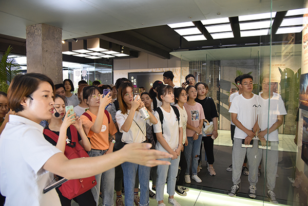 6月24日,山東理工大學管理學院80余名師生來到重山文化館參觀學習,集團副總經理王謙、運營中心總經理張威陪同接待。