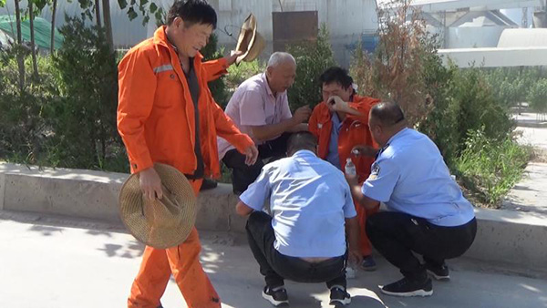 快!王世恩中暑了,趕緊打電話(huà)給班長(zhǎng)”,一起工作的李長(zhǎng)全向同事喊道。這是8月23日上午,集團(tuán)總務(wù)處開(kāi)展中暑應(yīng)急演練中的一幕。 此次演練按計(jì)劃:總務(wù)處一名道路養(yǎng)護(hù)工在熟料大棚工作時(shí)中暑暈倒,同事員工立即報(bào)告班長(zhǎng)和部門(mén)領(lǐng)導(dǎo)??倓?wù)處主任王宏接到電話(huà)后立即帶領(lǐng)相關(guān)人員奔赴現(xiàn)場(chǎng)。首先用冷毛巾濕敷中暑員工頭頂,并迅速把中暑職工抬到就近陰涼處,用清涼通氣的藥品通入中暑員工的鼻孔,最后讓其服下解暑藥品。根據(jù)員工的中暑程度讓其充分休息,嚴(yán)重中暑者計(jì)劃及時(shí)送醫(yī)救治。演練結(jié)束后,王宏對(duì)演練中的不足進(jìn)行了總結(jié),并提出了解決方案。通過(guò)此次演練。使干部職工認(rèn)識(shí)到了防暑降溫措施的重要性,增強(qiáng)了員工在高溫作業(yè)下的保護(hù)意識(shí),同時(shí)也提高了集團(tuán)總務(wù)處安保大隊(duì)的應(yīng)急能力。