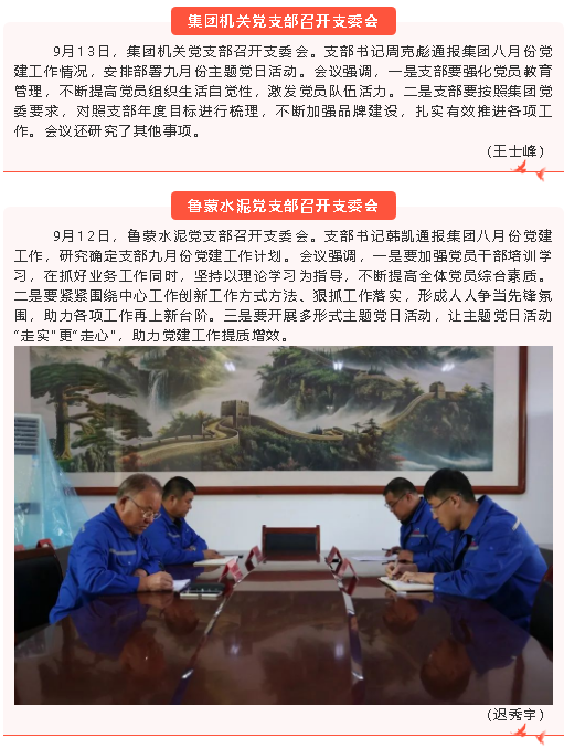 【黨建】南韓化工黨支部、集團(tuán)機(jī)關(guān)黨支部、魯蒙水泥黨支部分別召開支委會(huì)