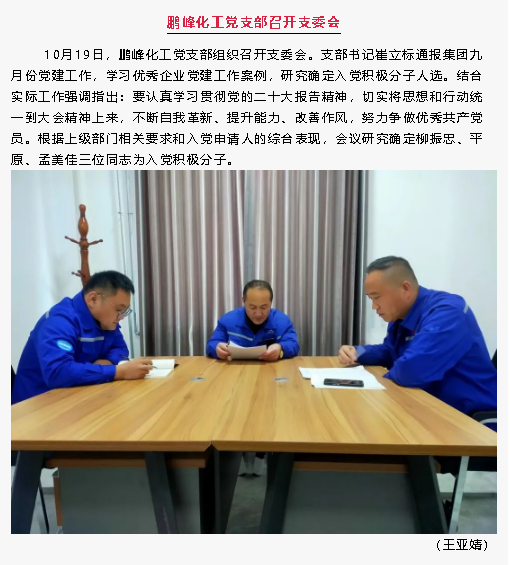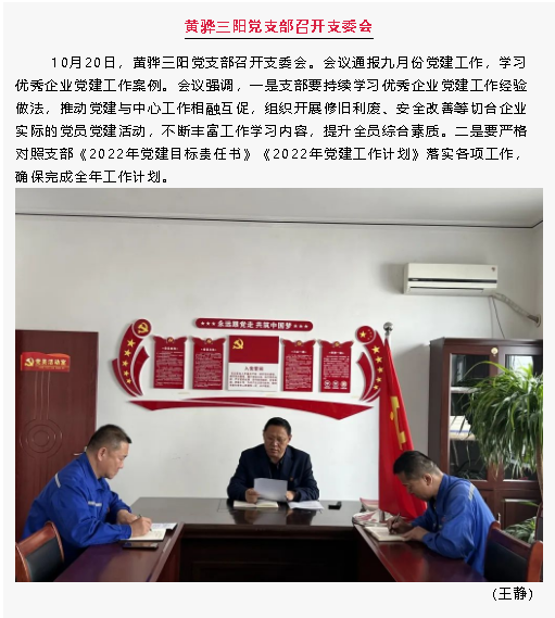 【黨建】黃驊三陽黨支部、鵬峰化工黨支部召開支委會