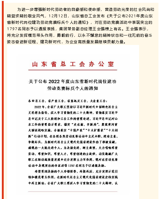 【榮譽(yù)】王會強(qiáng)同志榮獲“新時代崗位建功勞動競賽標(biāo)兵個人”