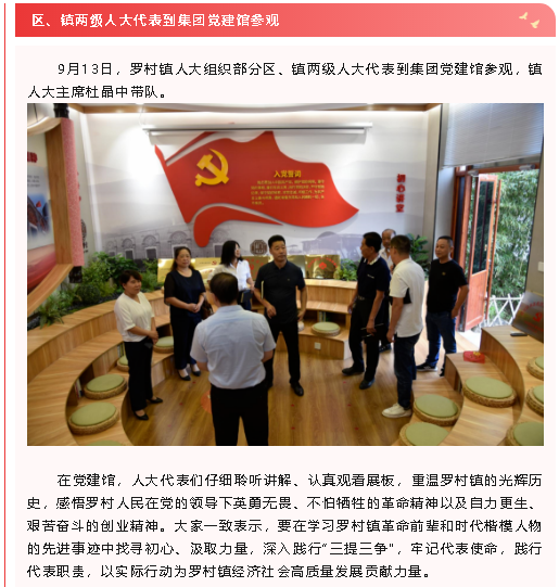 【黨建】區(qū)、鎮(zhèn)兩級人大代表到集團(tuán)黨建館參觀、集團(tuán)機(jī)關(guān)黨支部召開支委擴(kuò)大會