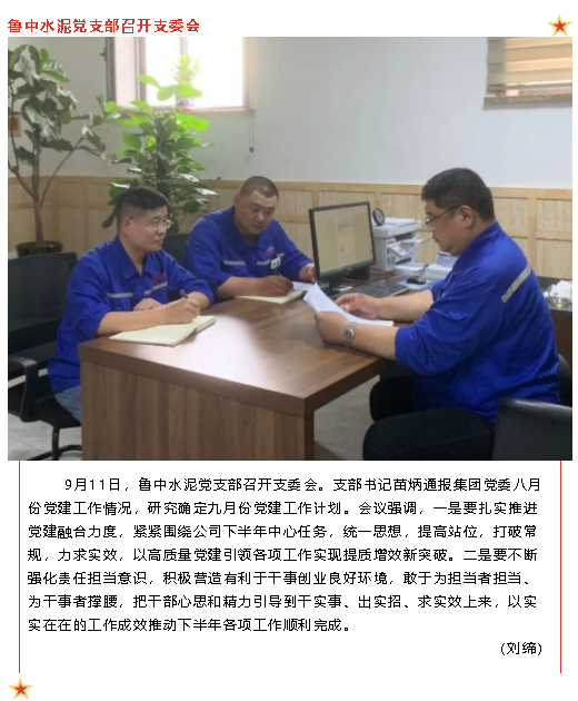 【黨建】魯中水泥黨支部、重山光電黨支部、魯蒙水泥黨支部分別召開支委會