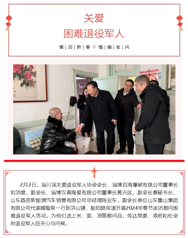 重山集團(tuán)參加淄川區(qū)關(guān)愛(ài)退役軍人協(xié)會(huì)春節(jié)走訪(fǎng)慰問(wèn)困難退役軍人活動(dòng)