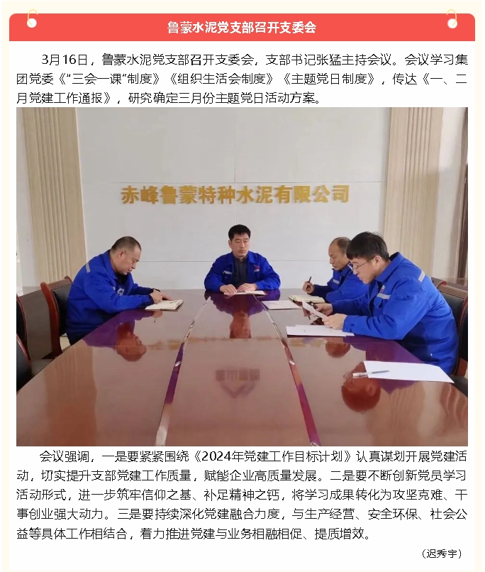 【黨建】魯蒙水泥黨支部、黃驊三陽黨支部召開支委會