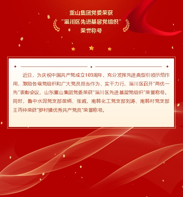【頭條】集團(tuán)黨委榮獲“淄川區(qū)先進(jìn)基層黨組織”榮譽(yù)稱號