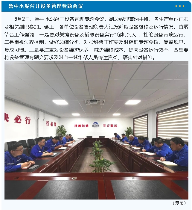 魯中水泥召開各級各類工作會議,深入推進提質增效