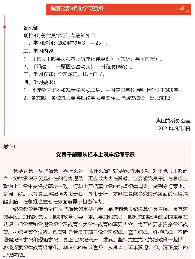 【通知】集團(tuán)黨委9月份學(xué)習(xí)通知