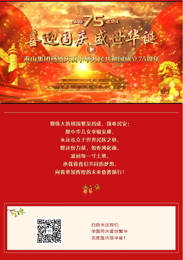 【喜迎國慶·盛世華誕】重山集團熱烈慶祝中華人民共和國成立75周年