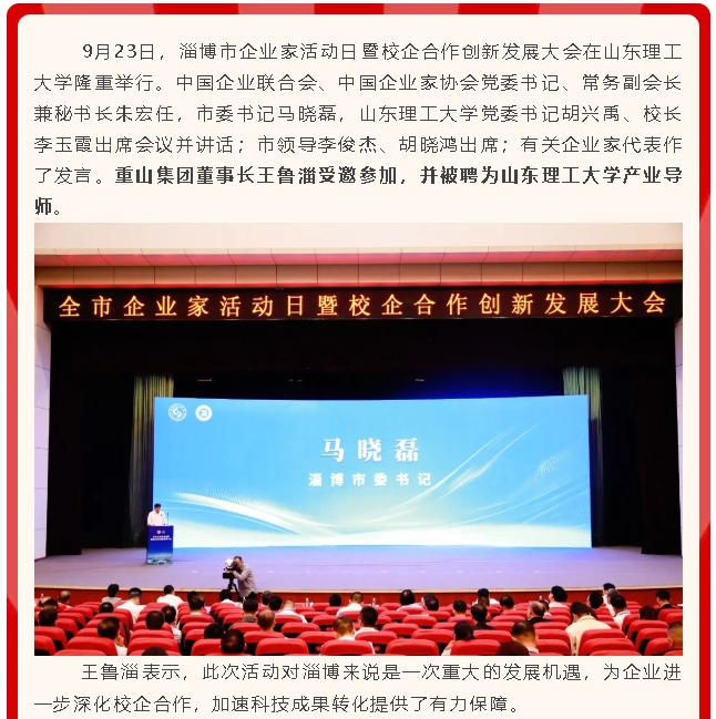 【頭條】重山集團參加全市企業(yè)家活動日暨校企合作創(chuàng)新發(fā)展大會