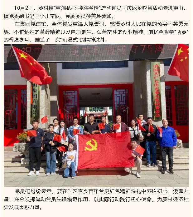 【黨建】鎮(zhèn)流動(dòng)黨員國慶返鄉(xiāng)教育活動(dòng)走進(jìn)重山