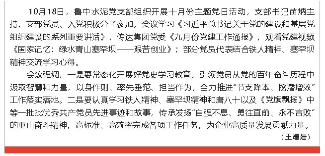 【黨建】集團(tuán)機(jī)關(guān)黨支部、魯中水泥黨支部開(kāi)展十月份主題黨日活動(dòng)