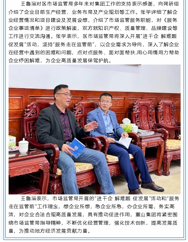 區(qū)市場監(jiān)管局到重山集團調(diào)研