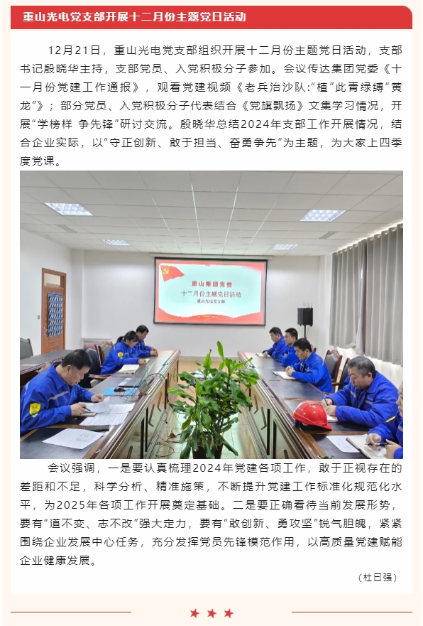 【黨建】集團(tuán)機(jī)關(guān)黨支部、重山光電黨支部開展十二月份主題黨日活動
