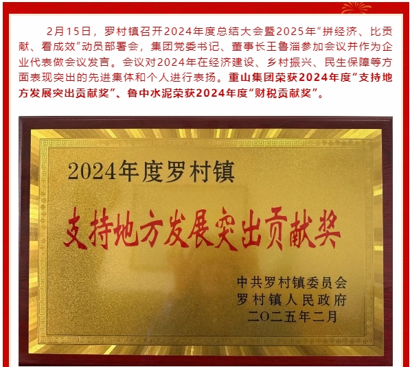 【頭條】重山集團(tuán)榮獲“支持地方發(fā)展突出貢獻(xiàn)獎”