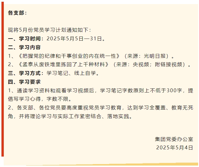 【通知】集團黨委5月份學(xué)習(xí)通知