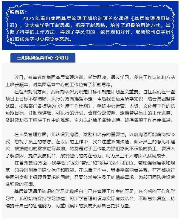 【心得分享】集團(tuán)基層管理干部培訓(xùn)心得分享(二)