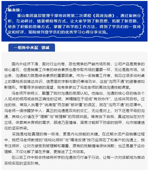 【心得分享】集團(tuán)基層管理干部培訓(xùn)心得分享(三)