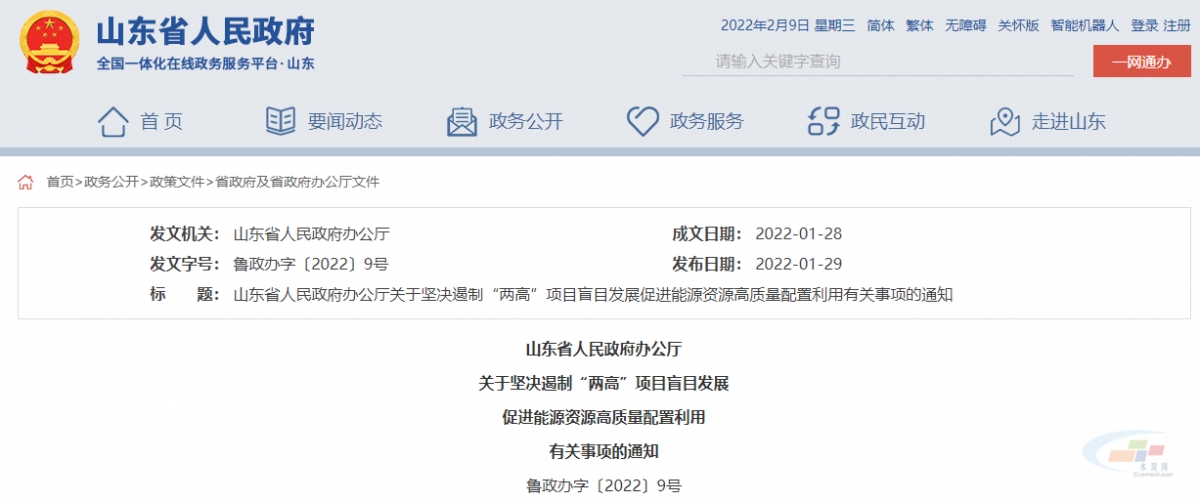 【轉(zhuǎn)載】山東省:堅(jiān)決遏制“兩高”項(xiàng)目盲目發(fā)展 水泥行業(yè)新上項(xiàng)目必須落實(shí)能源消費(fèi)減量替代