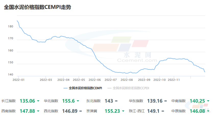 截止到,12月底,全國水泥價格指數(shù)CEMPI較去年同期下滑41.77。回顧2022年,“旺季不旺,淡季更淡”是全國水泥行情的基本旋律。