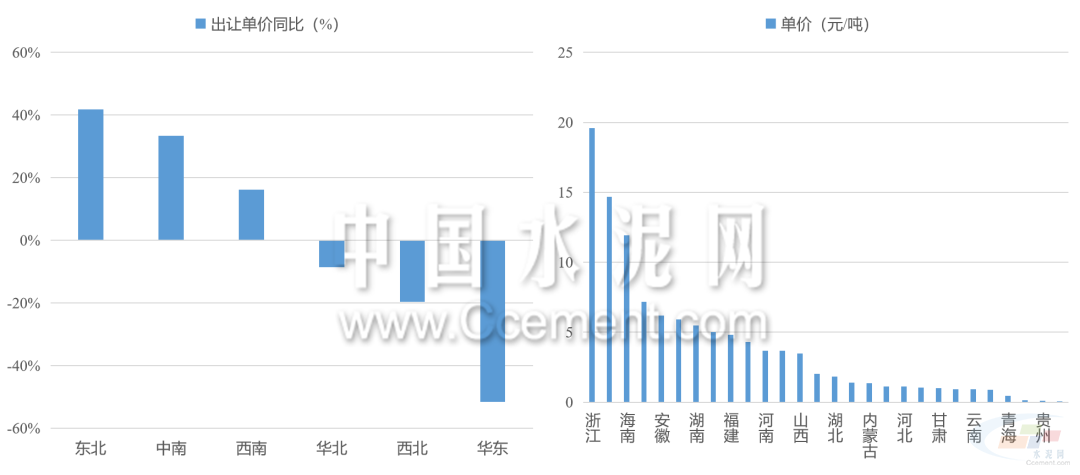 礦權(quán)單價整體下降。全國砂石礦權(quán)平均成交價格約4元/噸,同比下滑約20%,其中華東礦權(quán)交易單價下滑最為明顯。各省出讓的砂石礦單價差距有所縮小。浙江及遼寧是礦權(quán)單價最高和最低的省份。具體而言,浙江的交易單價由上半年的30元/噸以上降至20元/噸以下,進(jìn)一步拉低了華東地區(qū)整體的礦權(quán)交易單價。