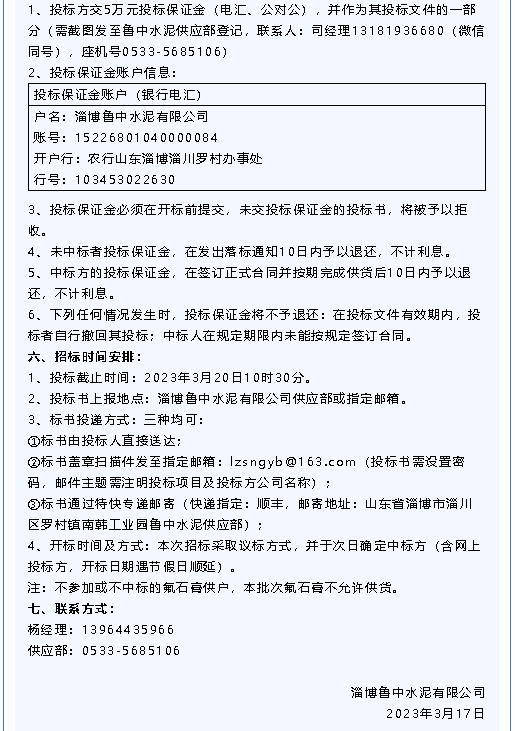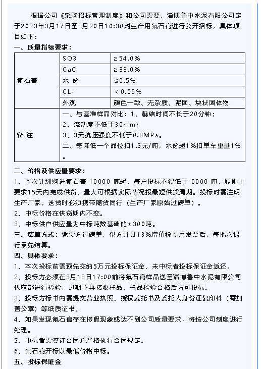【招標(biāo)公告】魯中水泥