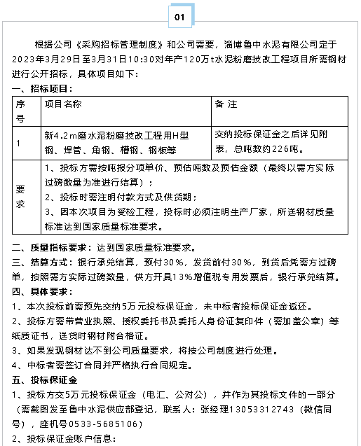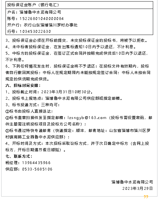 【招標(biāo)公告】魯中水泥