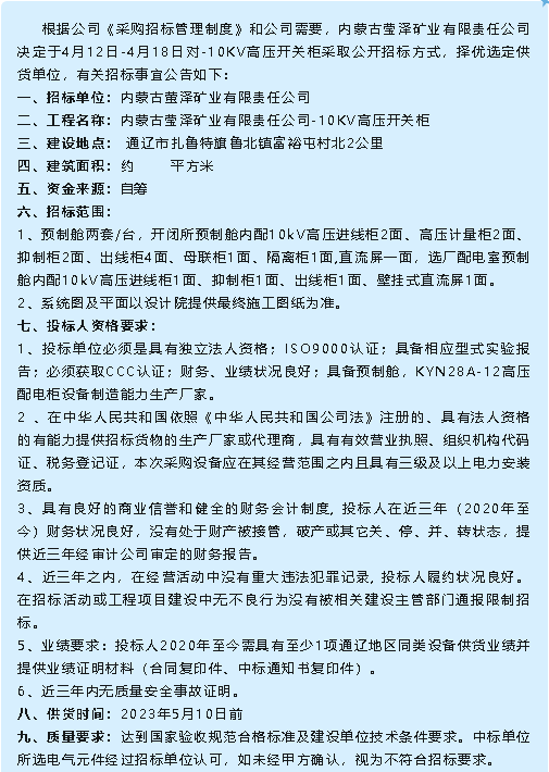 【招標公告】螢澤礦業(yè)
