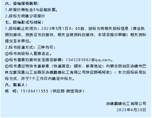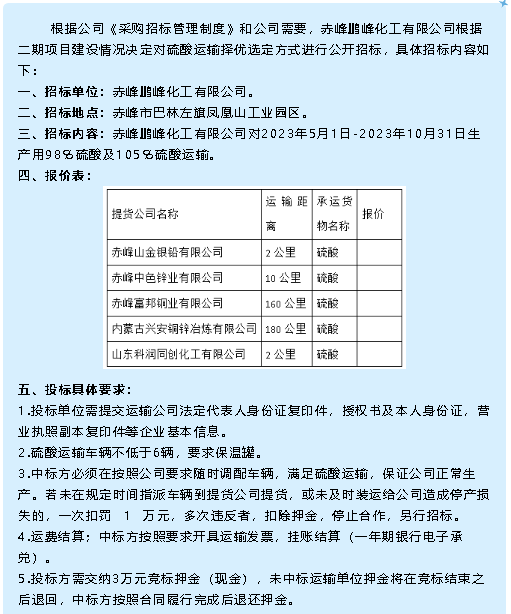 【招標(biāo)公告】鵬峰化工