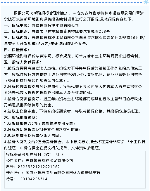【招標(biāo)公告】魯蒙水泥