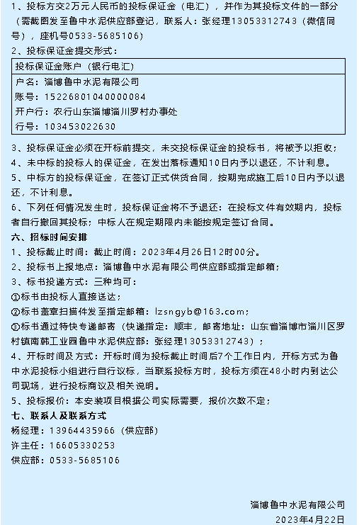 【招標(biāo)公告】魯中水泥