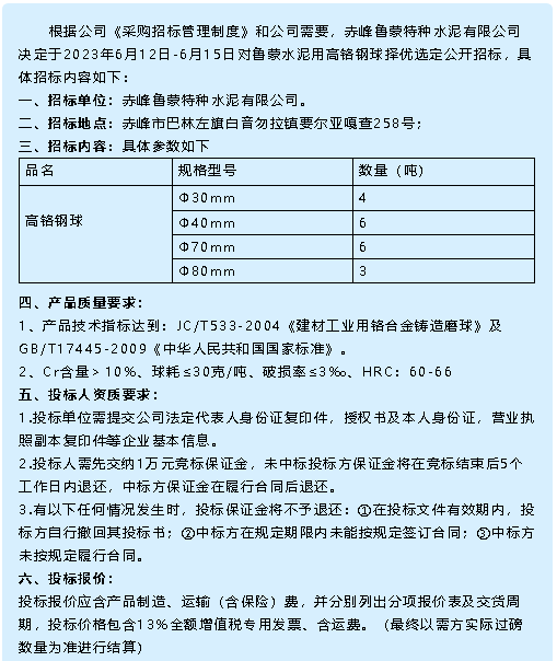 【招標公告】魯蒙水泥