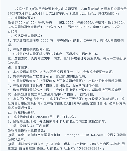 【招標公告】魯蒙水泥