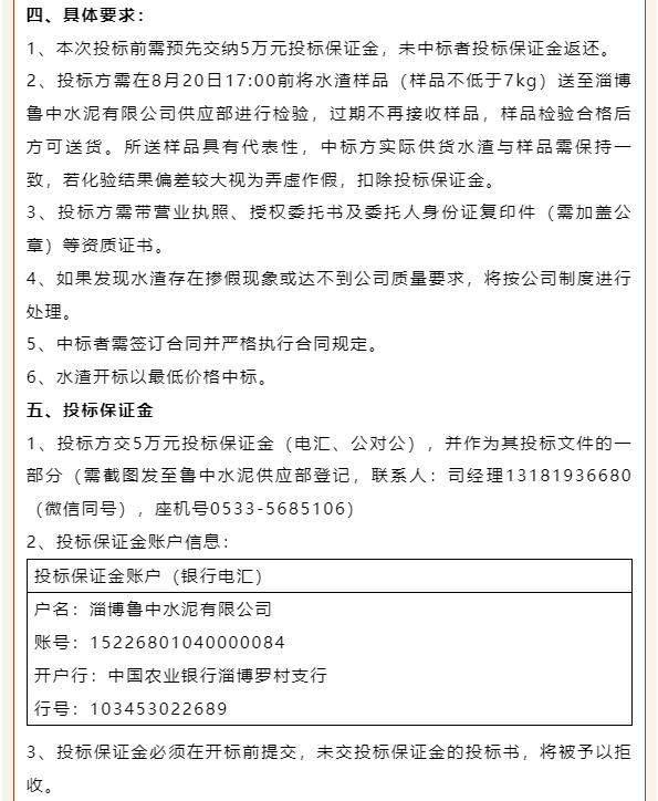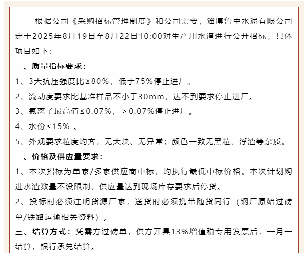 【招標(biāo)公告】魯中水泥