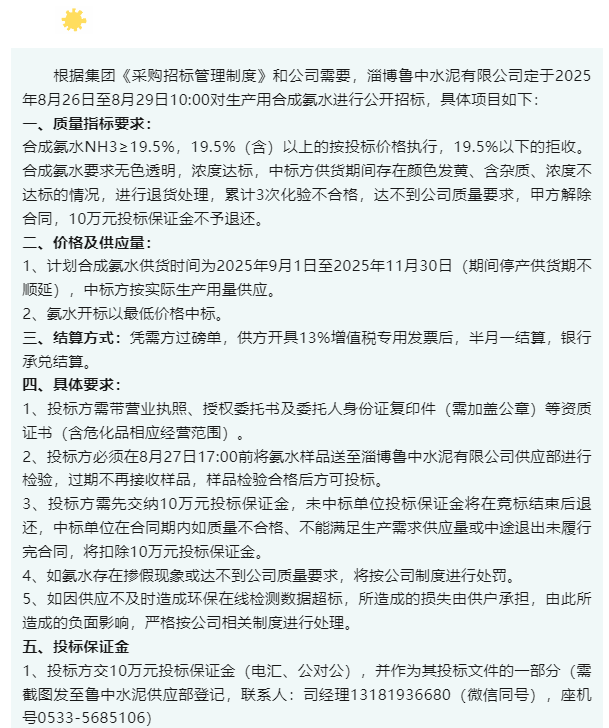 【招標(biāo)公告】魯中水泥