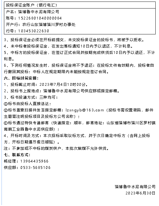 【招標(biāo)公告】魯中水泥