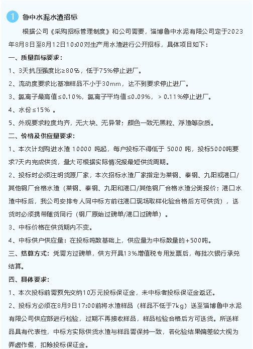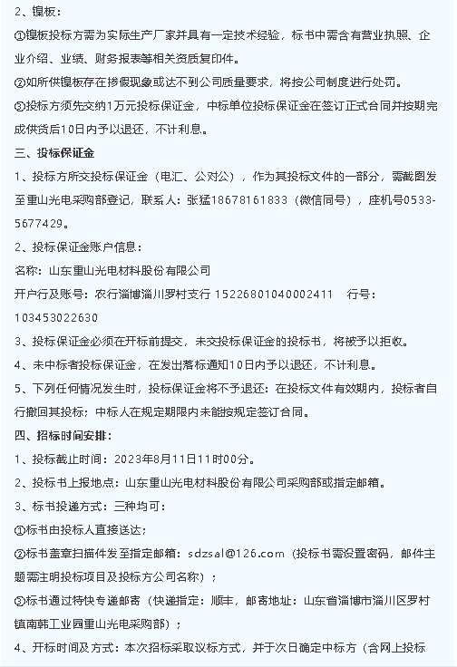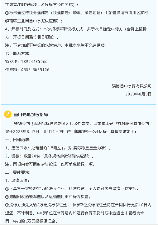 【招標(biāo)公告】魯中水泥、重山光電