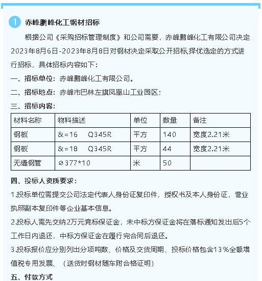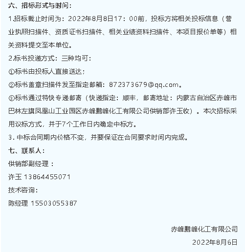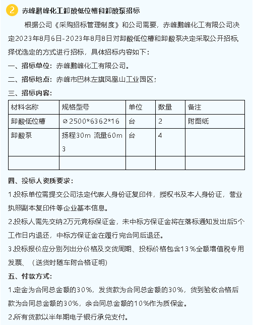 【招標(biāo)公告】鵬峰化工