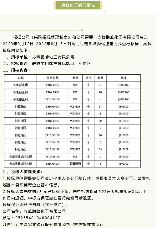 【招標(biāo)公告】魯中水泥、鵬峰化工