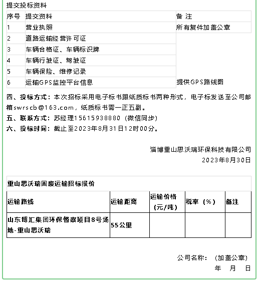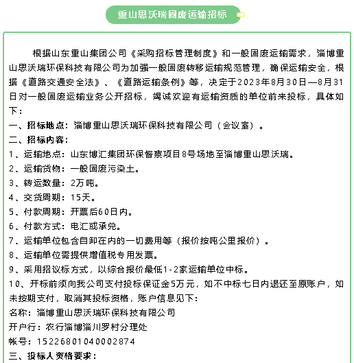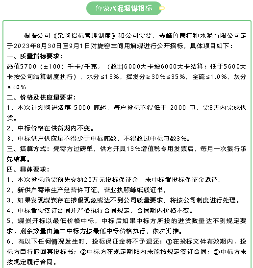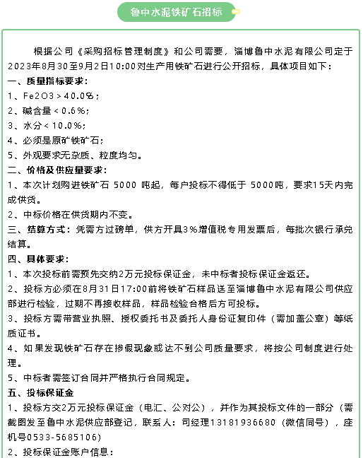 【招標(biāo)公告】魯中水泥鐵礦石、魯蒙水泥煙煤、重山思沃瑞固廢運輸招標(biāo)?